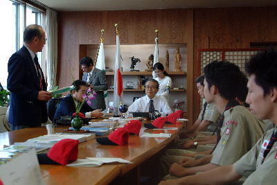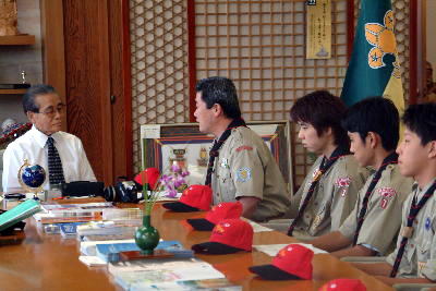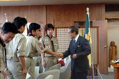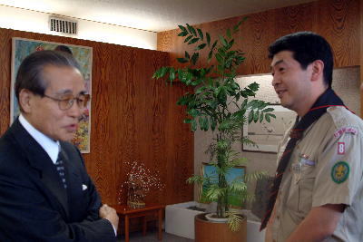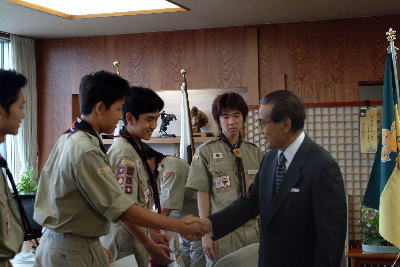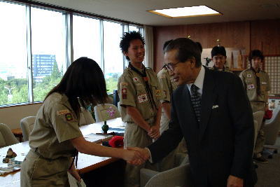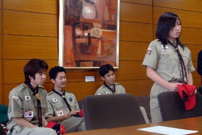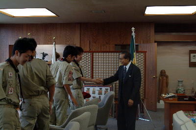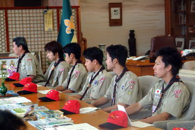 | 表敬の為、応接室に通されたスカウト達(緊張しています) |