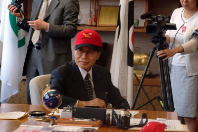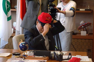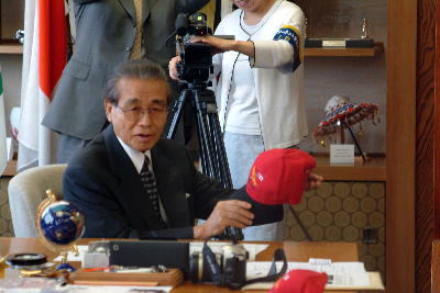 | 連盟長から、今回の派遣団キャップについてお褒めの言葉をいただきました。 |
