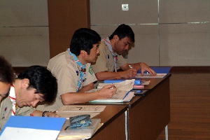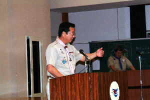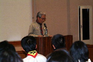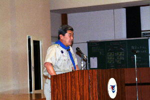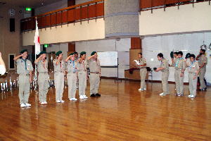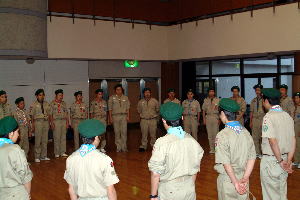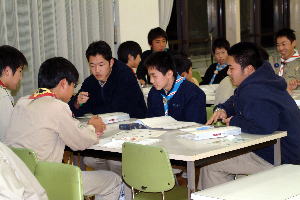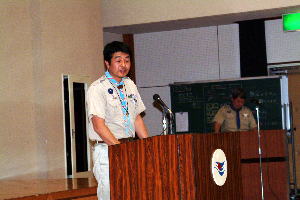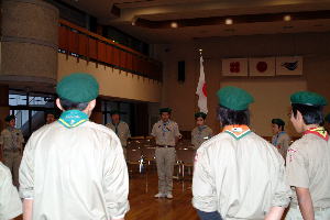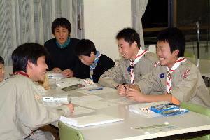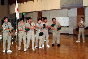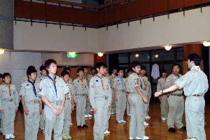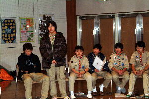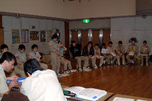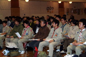 スカウト運動発祥の地、イギリス派遣について、スカウト達も緊張の面もちで聞き入っていた。 |