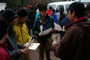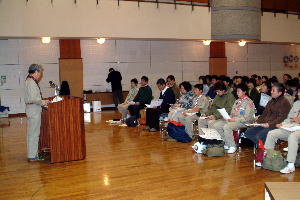 | 派遣隊長が、参加の心得を説明。 |