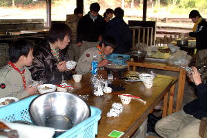 雨具を忘れたスカウトに”そなえよつねに”を自覚させる恵みの雨であった。 |