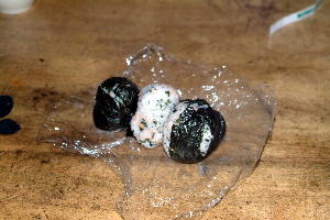 | オニギリそのものが外国人には不思議に見えるはずなのに、日本人が見てもグロテスクなライスボール。 |